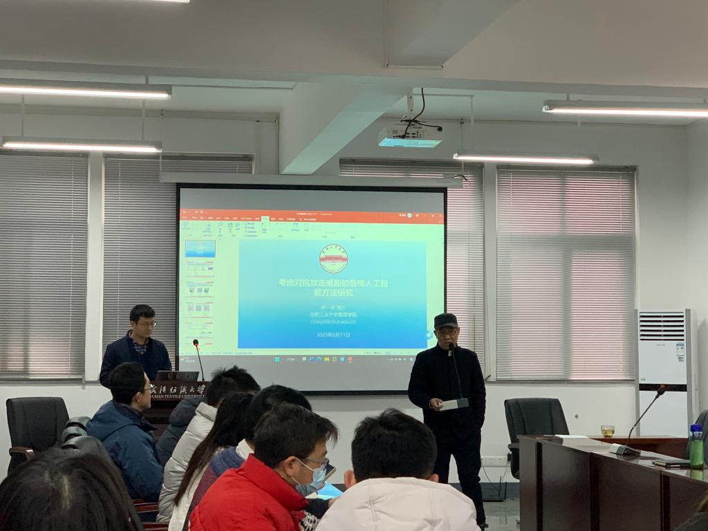2月11日上午,合肥工业大学柴一栋教授为bat365官网师生带来“考虑对抗攻击威胁的鲁棒人工智能方法研究”的讲座,本次讲座由夏火松教授主持,bat365正版唯一官网吴金红院长、吴锦峰副院长及部分教师出席,部分研究生积极参会。