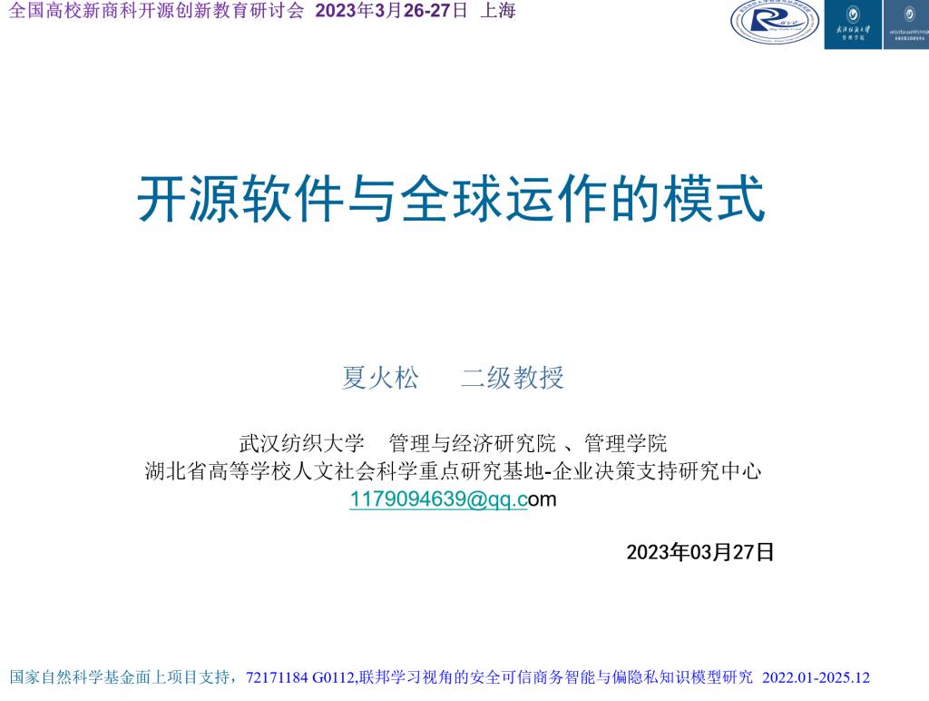 此处会议的主题报告包括:中国信息经济学会理事长中山大学谢康教授的报告;拓数派创始人兼CEO兼卡内基梅隆大学上海校友会主席冯雷报告;金柚网CTO(原SAP首席科学家)邬学宁报告;bat365正版唯一官网夏火松教授的报告、之江数科创始人王立斐、对外经贸大学教务处副处长李医群、国际经贸学院副教授王锐、开源中国赵峰、上海鲲鹏生态CTO袁洪林参会并作主题报告,分享他们在数字经济开源创新教育领域的丰富实践和深刻思考。中国信息经济学会副理事长齐佳音教授、上海大学bat365正版唯一官网副院长于晓宇教授、复旦大学bat365正版唯一官网王有为教授、对外经贸大学金融学院副院长郑迎飞教授、上海开源信息技术协会副监事长苑志国围绕新商科开放创新实训平台建设及功能进行了研讨。对外经贸大学教务处长朱建明、上海开源信息技术协会秘书长兼上海对外经贸大学人工智能与变革管理研究院副院长张国锋、电子工业出版社编辑王二华共同主持会议。
