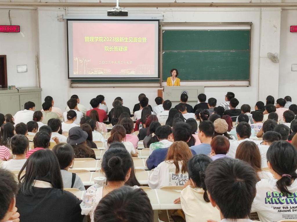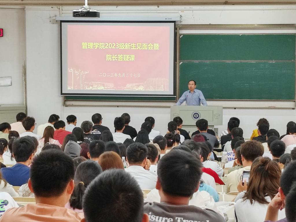 9月27日上午10时,bat365正版唯一官网在崇志楼T202教室举行2023级新生见面会暨院长答疑课。本次活动由bat365正版唯一官网学工办主任王双喜主持,院长吴金红、副院长张飞、党委副书记耿迪等领导班子成员以及院长助理杨筝、系主任谢静出席,学院2023级全体新生参与。
