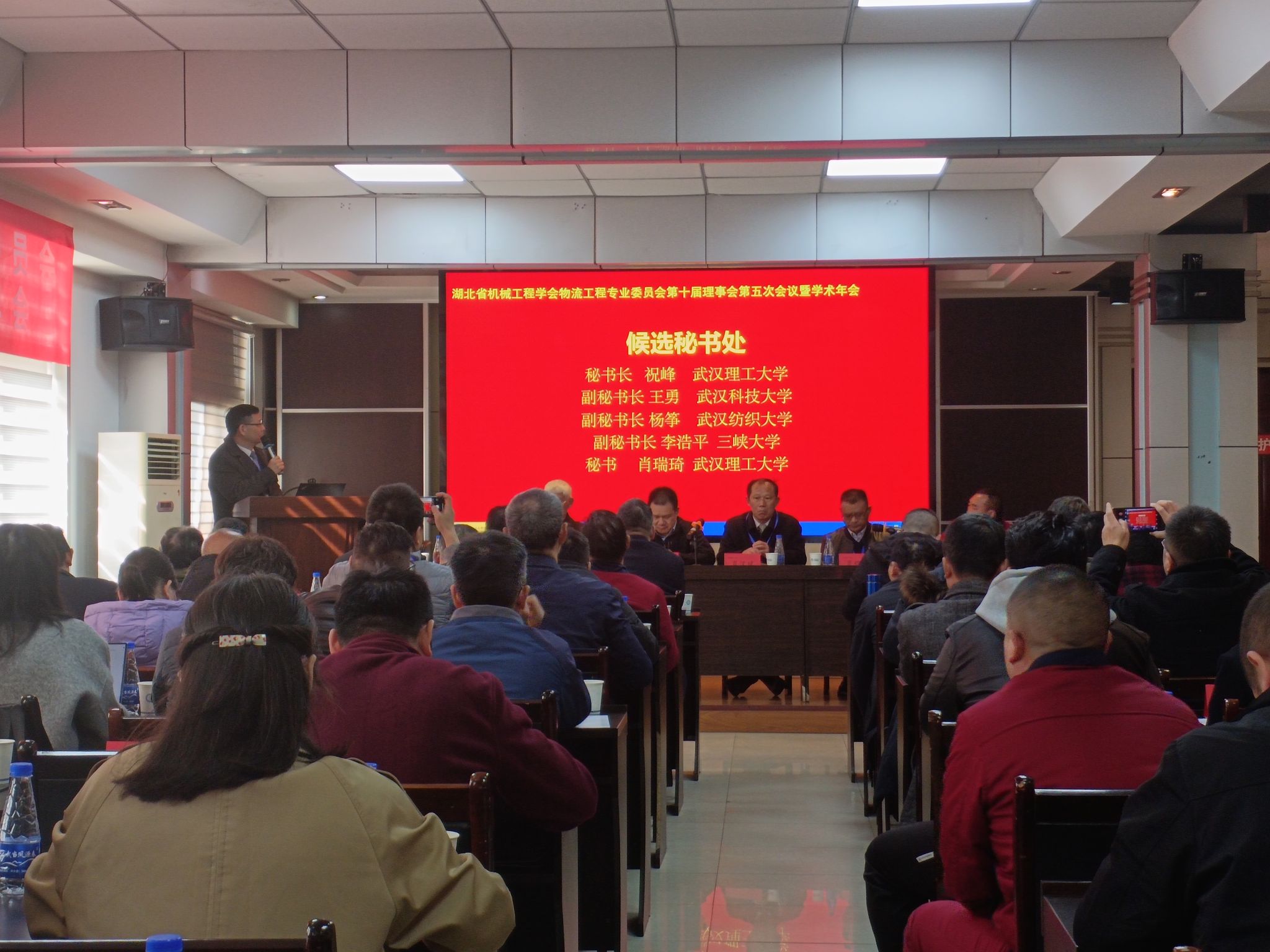 大会审议通过了湖北省机械工程学会物流工程专业委员会第十届理事会理事长肖汉斌教授所做的工作报告,第一阶段议程由秘书长曹小华教授主持。大会选举产生了学会新一届理事、常务理事、理事长、副理事长、秘书长、副秘书长等。会上,bat365官网院长吴金红教授当选为新一届副理事长,杨筝当选为副秘书长,张文芬博士当选为新一届理事。