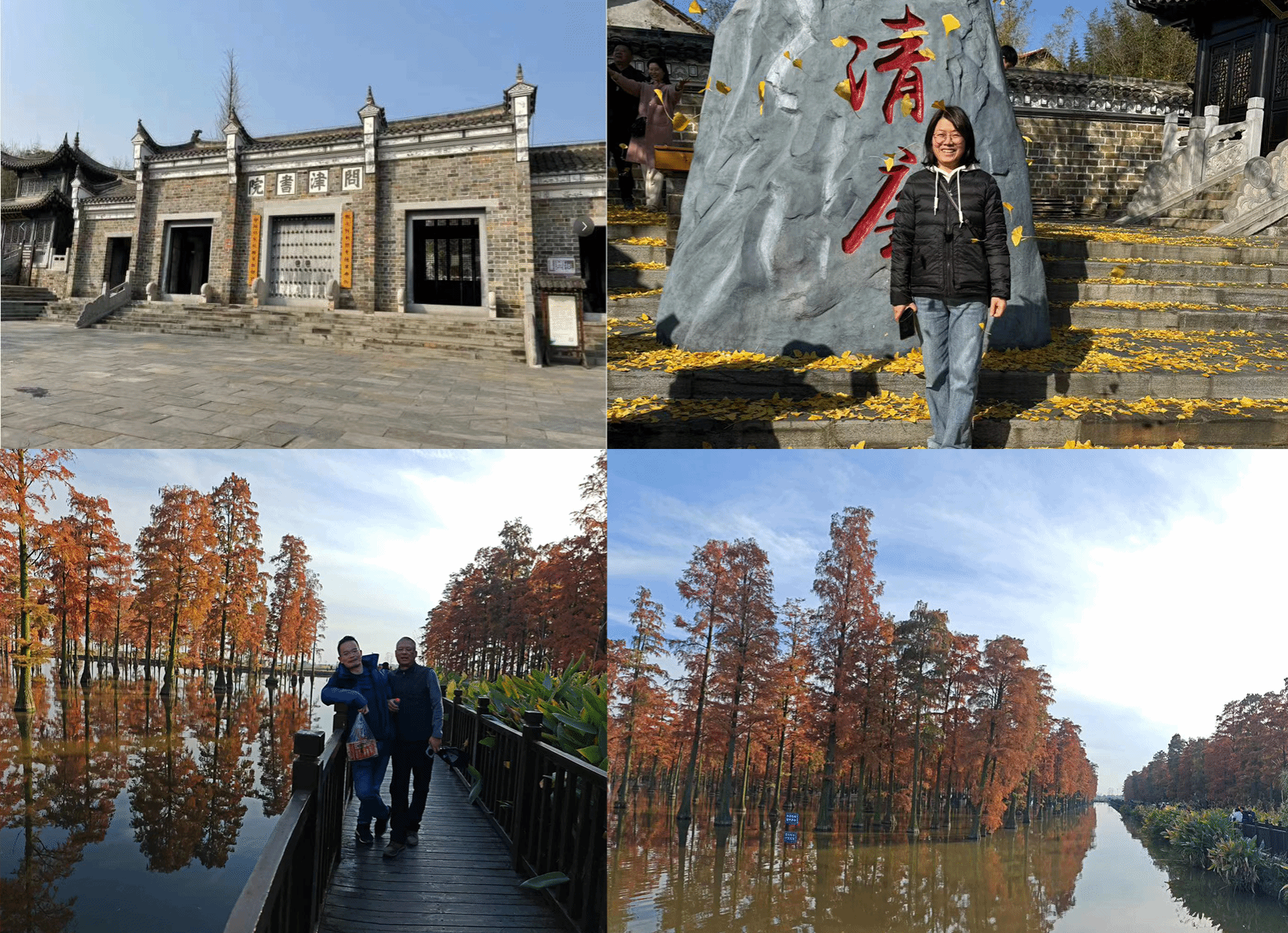 初冬暖阳照,莫负好时光。来到问津书院,老师们深深被这里的古色和书香韵味所吸引。户外寻冬沿途,枫叶铺满的长廊讲说着秋日的烂漫,飘零的银杏叶在记录着专属于冬日的颜色,书院里的青石台阶展示了这里曾经的辉煌,大家用自己的步伐丈量着这里的每一寸土地,感受着穿过青石瓦片之下划过的冬日旭阳。冬日里鸟儿的长音不绝于耳。这里不仅远离城市的喧嚣,还有“蓝天白云,青山绿水”环绕,可谓“抬头可顶蓝天,伸手可抚白云”,置身其中,心旷神怡。