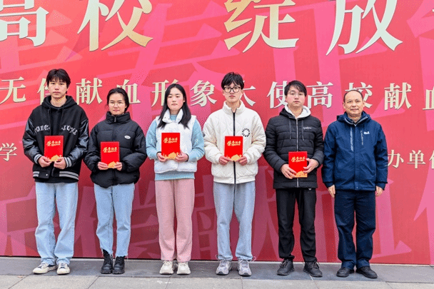 表彰环节,周宇豪等五位同学荣获“武汉市无偿献血热血标兵”称号,分别分享了献血经历,他们纷纷表示:加入到无偿献血的行列中来是一件无比自豪的事情。