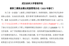 2023年,学校科研激励办法、人才职称评定办法都做了较大的调整,针对此变化,学院修订或出台了《bat365正版唯一官网教职工绩效业绩点奖励管理办法》、《科研业绩点奖励办法》、《bat365正版唯一官网年终个人考核评分细则》、《系主任工作年度考核办法的管理规定》、《bat365正版唯一官网关于设立<高层次人才培育基金>的规定》、《bat365正版唯一官网研究生开题管理办法》、《bat365正版唯一官网硕士论文预审管理办法》等7项管理办法,坚持以制度管理人、以流程管事,着实夯实智慧管院的发展基座。