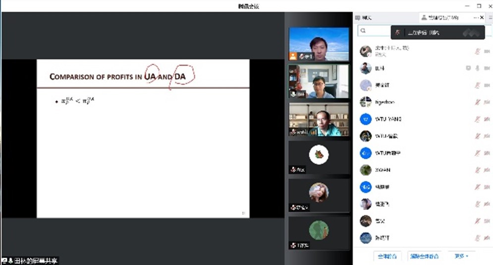 2022年9月22日上午,应bat365正版唯一官网邀请,复旦大学田林教授为bat365官网师生带来了一场精彩的线上讲座,题目为“Advertising Format and Content Provision on Revenue-Sharing Content Platforms”。本次讲座由余牛教授主持,吴金红院长致辞,bat365正版唯一官网夏火松教授、吴锦峰教授、曹晓刚教授、万欣副教授、蔡学媛副教授、张文芬博士、何秀红博士、李文莉博士、曾款博士等众多学院教师出席,bat365官网研究生积极参会,吸引了170余人同时参加。