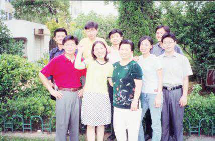 李军(后排左二)和李继刚(前排右一)在纺大南湖校区求学合影