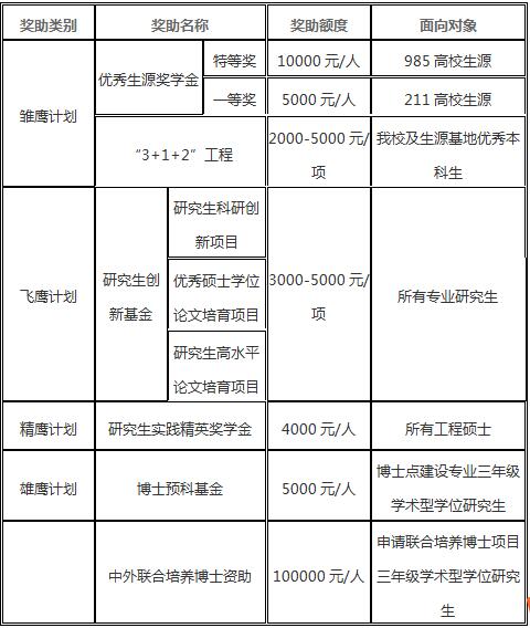 (2)学校同时实施“四鹰计划”,符合相关条件的全日制研究生均可申请相应奖助。