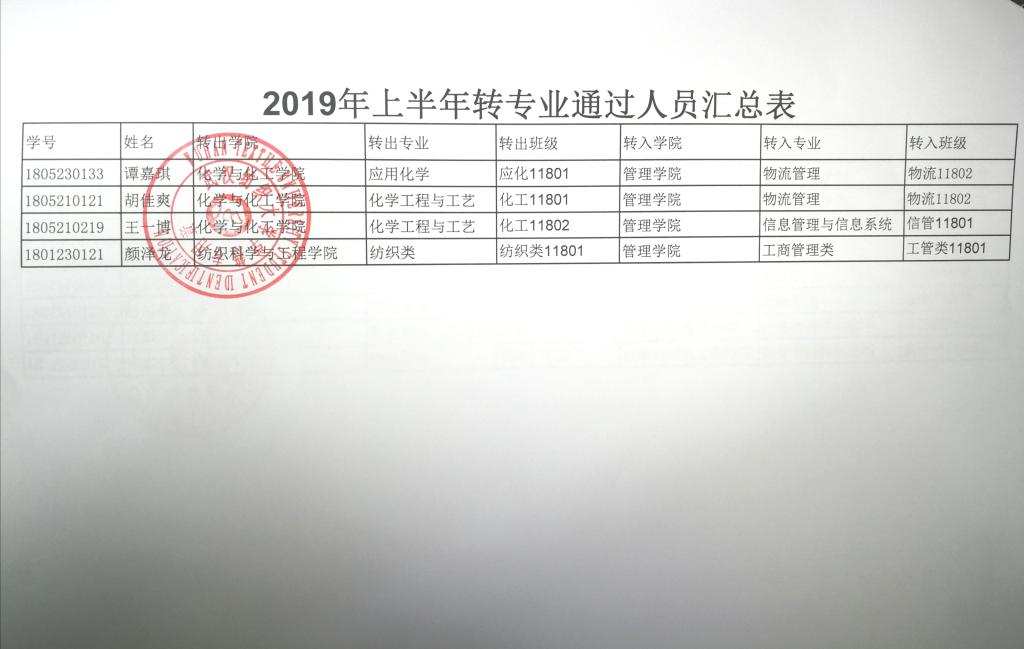 2019年上半年转专业通过人员公示