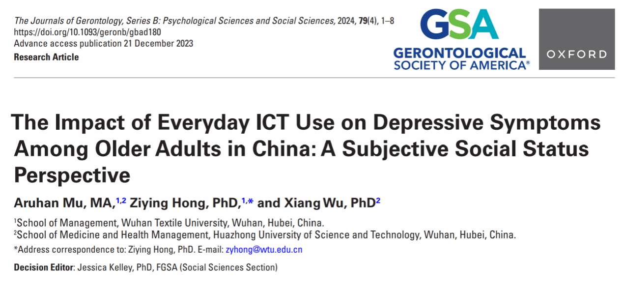 近期,国际老年学领域期刊《The Journals of Gerontology: Series B》发表我校bat365正版唯一官网洪紫映博士在IT与健康老龄化研究方向取得的重要成果:“The Impact of Everyday ICT Use on Depressive Symptoms Among Older Adults in China: A Subjective Social Status Perspective”。 文章DOI:https://doi.org/10.1093/geronb/gbad180。bat365正版唯一官网为该论文的第一单位。