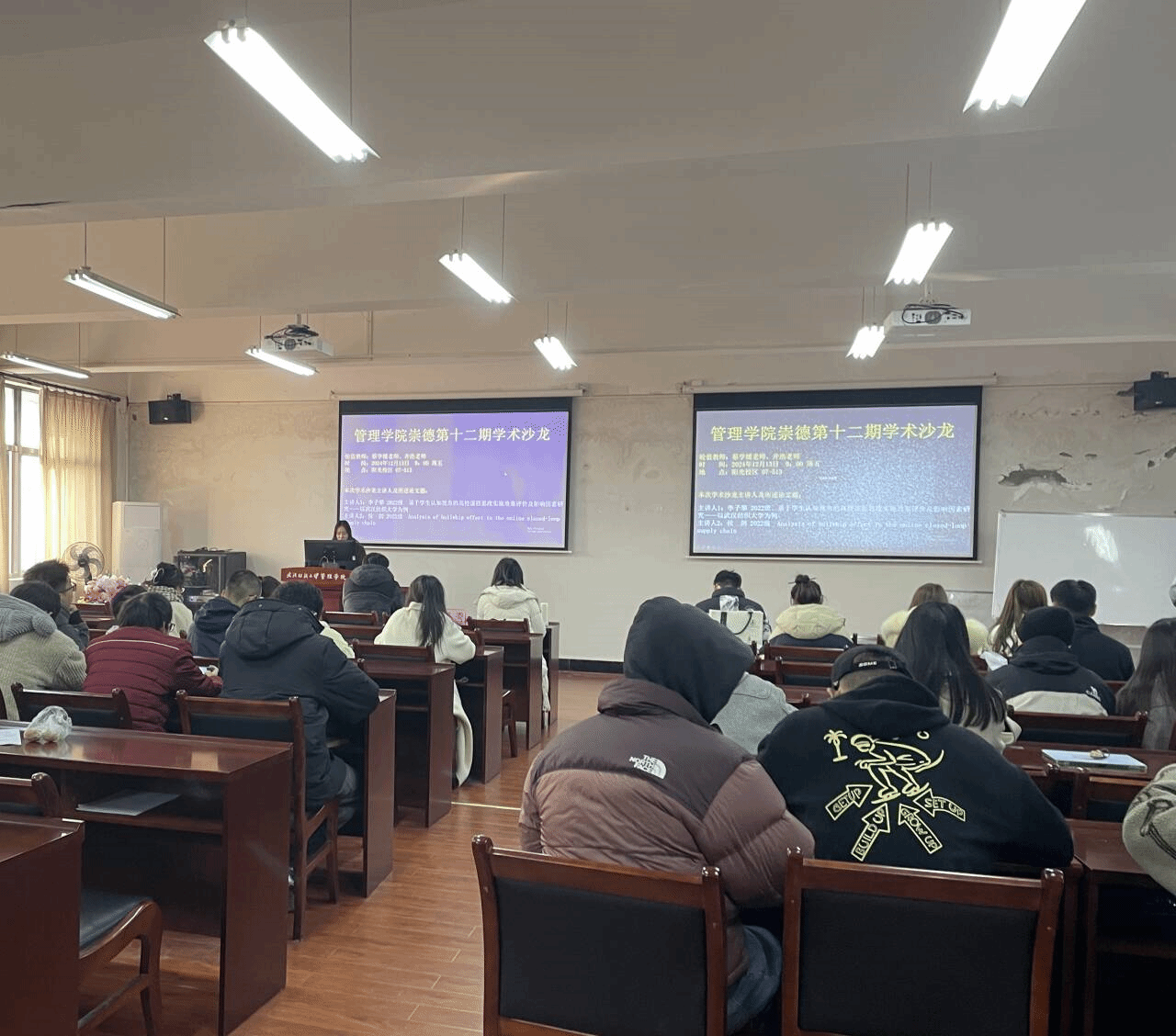 为了加强研究生之间的学术交流,激发创新思维,bat365正版唯一官网于2024年12月13日在阳光校区7-513教室举办了第12期“崇德”学术沙龙活动。本次学术沙龙活动由李子攀和侯剑两名同学主讲,学院特别邀请了蔡学媛老师和井浩老师参加此次学术沙龙活动并发表点评。