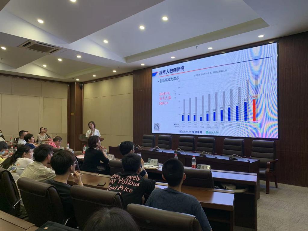 6月16日下午,在校研究生院大力支持下,bat365正版唯一官网研究生招生团队赴武汉工商学院进行专场招生宣讲会顺利举行。校研究生院刘欣副院长、bat365正版唯一官网党委书记滕胜娟、院长吴金红教授、副院长张飞副教授、杨筝博士、郎乔奇博士参加招生宣讲会。