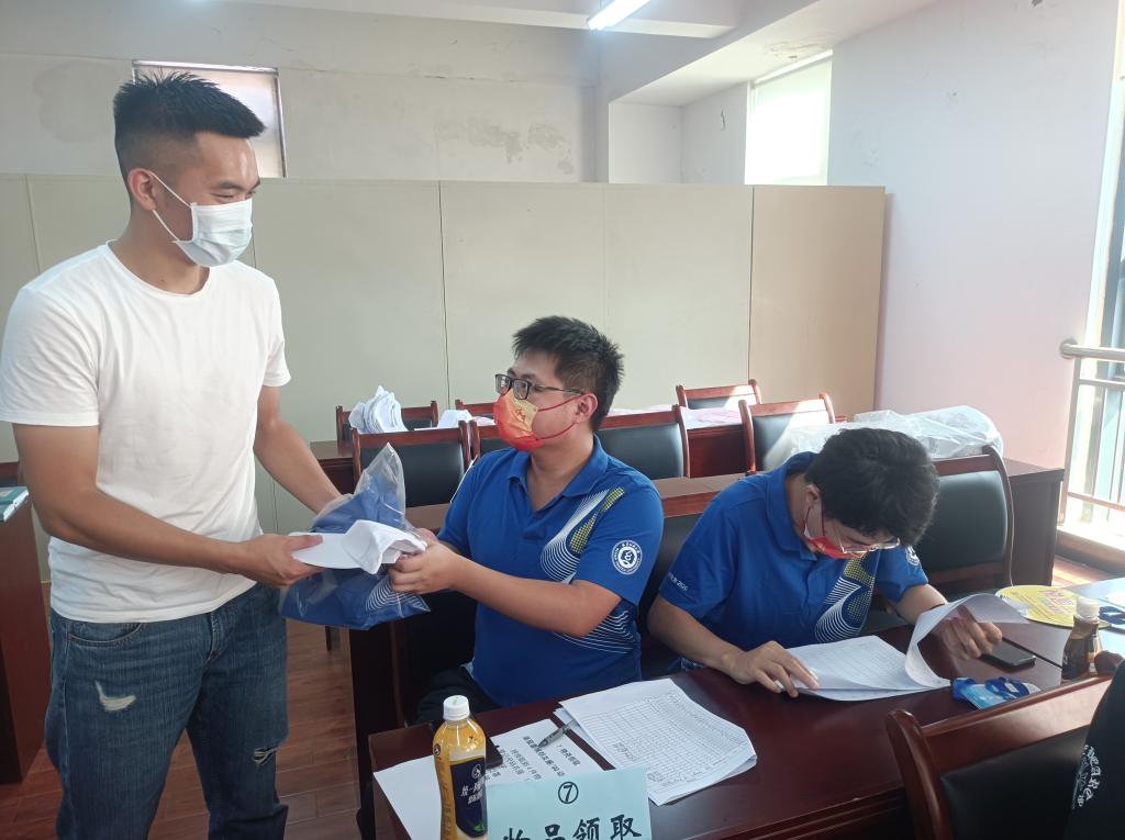 除了对接志愿者,报到点的志愿者们工作开展得有条不紊。从资料审核-学历认证-现场照片采集-缴费凭证和喜报验收-学平险购买-领取物资,每个人各司其职,认真负责。